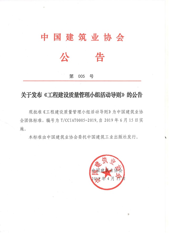 關于發布《工程建設質量管理小組活動導則》的公告