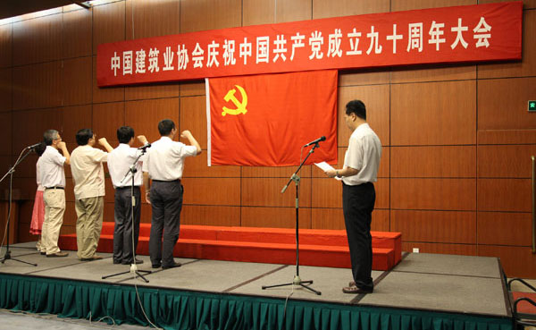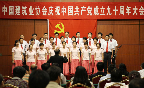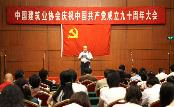 2011年6月29日,中國(guó)建筑業(yè)協(xié)會(huì)在北京隆重召開(kāi)中國(guó)共產(chǎn)黨成立90周年慶祝大會(huì),歌頌中國(guó)共產(chǎn)黨90年來(lái)的豐功偉績(jī),表達(dá)協(xié)會(huì)職工熱愛(ài)黨、熱愛(ài)祖國(guó)的滿腔情懷和加強(qiáng)協(xié)會(huì)黨組織建設(shè)的決心。副會(huì)長(zhǎng)徐義屏、副會(huì)長(zhǎng)兼秘書(shū)長(zhǎng)吳濤與協(xié)會(huì)秘書(shū)處及各分支機(jī)構(gòu)近兩百名職工參加大會(huì)。社團(tuán)一黨委有關(guān)同志應(yīng)邀出席。