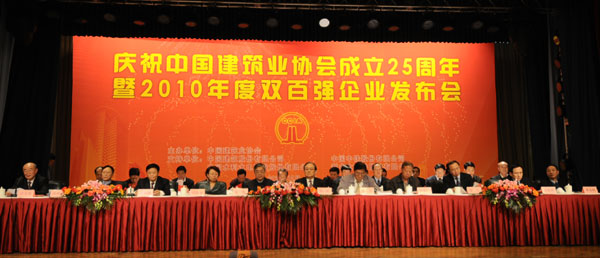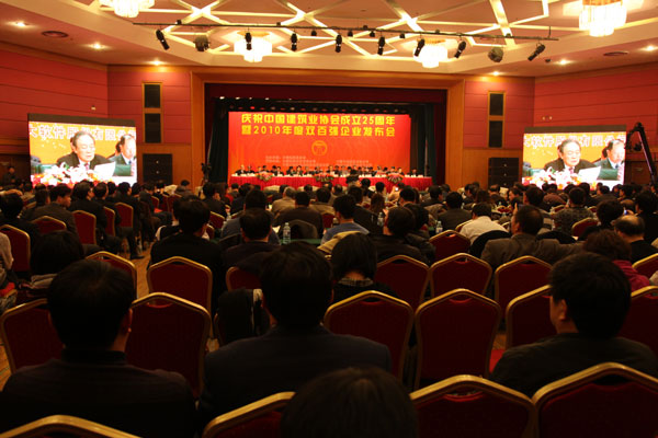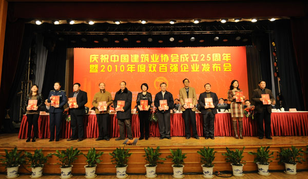 五湖四海,歡聚一堂。2011年12月14日,慶祝中國建筑業(yè)協(xié)會成立25周年暨2010年度中國建筑業(yè)企業(yè)雙百強(qiáng)發(fā)布會在京勝利召開。會上,隆重發(fā)布了中國建筑業(yè)企業(yè)競爭力百強(qiáng)和最具成長性百強(qiáng)(簡稱雙百強(qiáng)),并對79家建筑行業(yè)先進(jìn)協(xié)會、81名建筑行業(yè)優(yōu)秀秘書長、206家全國建筑業(yè)先進(jìn)企業(yè)、280名全國建筑業(yè)優(yōu)秀企業(yè)家進(jìn)行了表彰。住房和城鄉(xiāng)建設(shè)部姜偉新部長特為大會發(fā)來賀信,中國建筑業(yè)協(xié)會鄭一軍會長出席并作重要講話。原建設(shè)部黨組成員、中國金屬結(jié)構(gòu)協(xié)會會長姚兵,住房和城鄉(xiāng)建設(shè)部總工程師陳重、科技委常務(wù)副主任李秉仁、建筑市場監(jiān)管司副司長劉曉艷,中國建筑業(yè)協(xié)會副會長易軍、李長進(jìn)、范集湘、蔣志權(quán)、徐義屏、張魯風(fēng)、吳濤、欒德成、史殿臣、耿立新、李寶元、耿裕華、丘小廣、楊鏡璞、李里丁,中國安裝協(xié)會會長田世宇以及各地方建筑業(yè)協(xié)會、行業(yè)建設(shè)協(xié)會的有關(guān)領(lǐng)導(dǎo)和會員單位代表共600余人參會。
