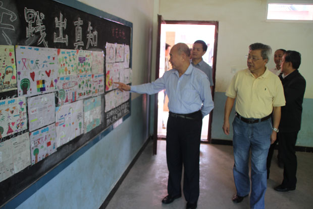 徐義屏副會長、四川省建筑業協會楊乾芳執行會長和花園小學的同學們親切交談