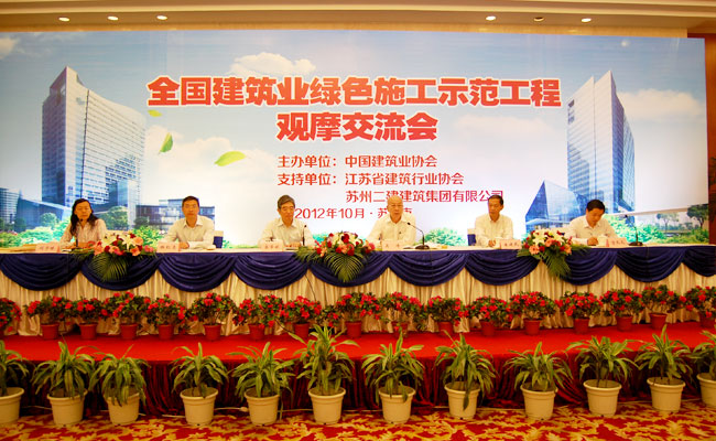 為進(jìn)一步促進(jìn)建筑業(yè)發(fā)展方式轉(zhuǎn)變,建設(shè)資源節(jié)約型、環(huán)境友好型社會,加強(qiáng)和促進(jìn)建筑業(yè)節(jié)能減排與綠色施工,中國建筑業(yè)協(xié)會根據(jù)鄭一軍會長關(guān)于“協(xié)會要把加強(qiáng)和促進(jìn)建筑節(jié)能減排和綠色施工作為今明兩年工作的重中之重,抓住不放,抓出成效”的指示,自2010年起,在行業(yè)內(nèi)率先開展綠色施工示范工程創(chuàng)建活動。兩年來,已有兩批共93項(xiàng)工程被列為全國建筑業(yè)綠色施工示范工程。為交流創(chuàng)建全國建筑業(yè)綠色施工示范工程經(jīng)驗(yàn),發(fā)揮示范工程的集聚輻射帶動作用, 10月11-12日,中國建筑業(yè)協(xié)會在蘇州舉辦了全國建筑業(yè)綠色施工示范工程觀摩交流會,并發(fā)布了《全國建筑業(yè)綠色施工示范工程申報與驗(yàn)收指南》。中國建筑業(yè)協(xié)會副會長兼秘書長吳濤、江蘇省建筑行業(yè)協(xié)會會長高學(xué)斌出席會議并講話。會議由中建協(xié)副秘書長劉宇林主持。本次觀摩交流會得到了江蘇省建筑行業(yè)協(xié)會和蘇州二建建筑集團(tuán)有限公司的大力支持,來自全國建筑業(yè)企業(yè)和相關(guān)行業(yè)協(xié)會的代表千余人參會,規(guī)模空前。