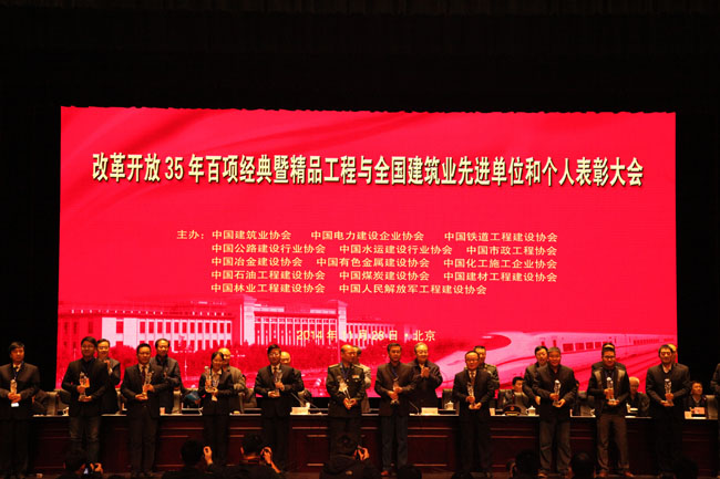 11月28日,中國(guó)建筑業(yè)協(xié)會(huì)在北京召開(kāi)表彰大會(huì),發(fā)布改革開(kāi)放35年百項(xiàng)經(jīng)典暨精品工程,表彰全國(guó)建筑業(yè)先進(jìn)企業(yè)、優(yōu)秀企業(yè)家、優(yōu)秀總工程師和2014年全國(guó)建筑業(yè)質(zhì)量管理誠(chéng)信企業(yè)。原建設(shè)部副部長(zhǎng)、中國(guó)建筑業(yè)協(xié)會(huì)會(huì)長(zhǎng)鄭一軍,中國(guó)人民解放軍總后基建營(yíng)房部副部長(zhǎng)李建及13家建設(shè)行業(yè)協(xié)會(huì)的領(lǐng)導(dǎo)出席會(huì)議。會(huì)議由中國(guó)建筑業(yè)協(xié)會(huì)副會(huì)長(zhǎng)徐義屏主持。