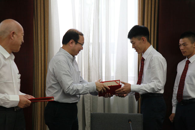 易軍副部長(zhǎng)向獲獎(jiǎng)選手頒發(fā)榮譽(yù)證書和獎(jiǎng)金