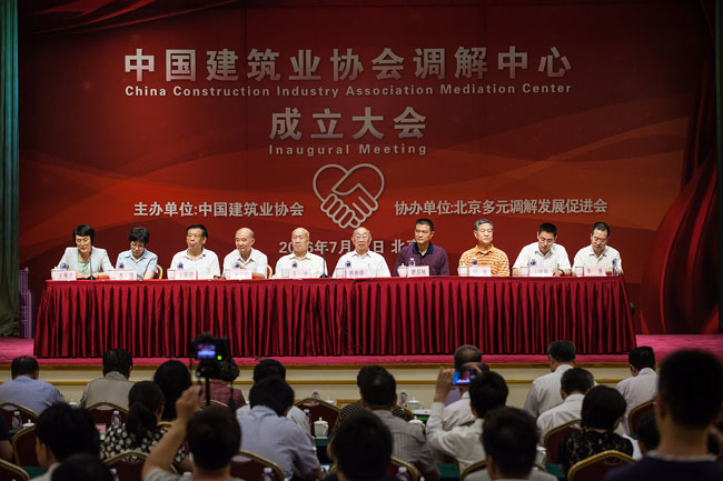 2016年7月23日,全國(guó)建筑行業(yè)首家具有行業(yè)調(diào)解職能的專業(yè)調(diào)解機(jī)構(gòu)——“中國(guó)建筑業(yè)協(xié)會(huì)調(diào)解中心”在京成立。中國(guó)建筑業(yè)協(xié)會(huì)副會(huì)長(zhǎng)兼秘書(shū)長(zhǎng)吳濤、專家委員會(huì)副主任徐義屏,北京多元調(diào)解發(fā)展促進(jìn)會(huì)會(huì)長(zhǎng)翟晶敏、中國(guó)國(guó)際經(jīng)濟(jì)貿(mào)易仲裁委員會(huì)副秘書(shū)長(zhǎng)李虎、北京仲裁委員會(huì)處長(zhǎng)丁建勇、中國(guó)中鐵股份有限公司董事會(huì)秘書(shū)兼總法律顧問(wèn)于騰群以及法院系統(tǒng)的老領(lǐng)導(dǎo)出席會(huì)議。全國(guó)各地大型建筑業(yè)企業(yè)的法律部負(fù)責(zé)人、法律顧問(wèn),建設(shè)單位、房地產(chǎn)企業(yè)及勘察設(shè)計(jì)、工程造價(jià)、咨詢檢測(cè)、科研院校和律師界代表200多人參加會(huì)議。中國(guó)建筑業(yè)協(xié)會(huì)副秘書(shū)長(zhǎng)王秀蘭主持會(huì)議。