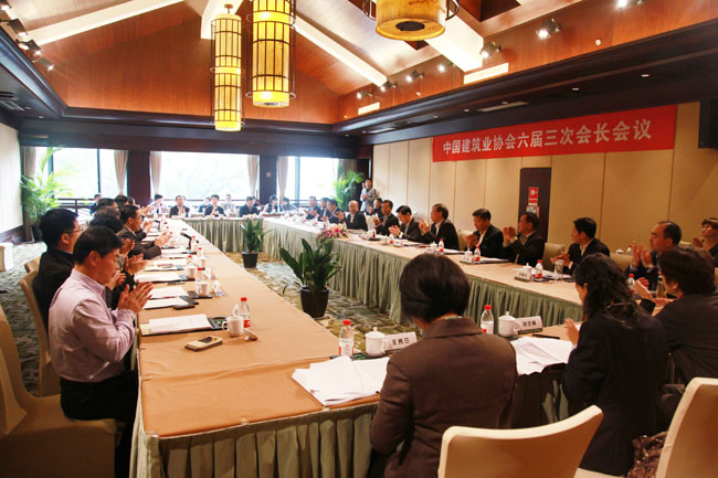 11月18日,中國建筑業(yè)協(xié)會在杭州召開六屆三次會長會議。中國建筑業(yè)協(xié)會會長王鐵宏主持會議,吳濤、尤京、王祥明、孫波、莊尚標、劉耀華、李平、李立勇、李寶元、楊鏡璞、吳建軍、張起翔、陳世華、林秋美、金寧運、耿裕華、笪鴻鵠、韓平、雷毅、樓永良等20位副會長出席會議,副秘書長李蓬、景萬、劉宇林、趙峰、王秀蘭列席會議。