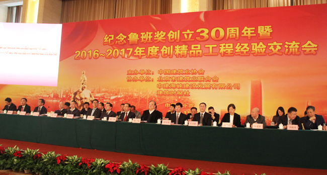 11月6日,中國建筑業協會在北京釣魚臺國賓館召開會議,隆重發布238項2016~2017年度中國建設工程魯班獎(國家優質工程)。住房城鄉建設部副部長易軍、原副部長鄭一軍、總工程師陳宜明、工程質量安全監管司司長李如生、建筑市場監管司巡視員張毅、人事司司長江小群,中國建筑業協會會長王鐵宏,住房城鄉建設部建筑市場監管司原司長吳慧娟,中國建筑業協會副會長兼秘書長吳濤,副會長尤京、劉起濤、劉耀華、李寶元、楊鏡璞、肖緒文、吳建軍、張兆祥、林秋美、耿裕華、韓平等出席大會。會議由吳濤主持。