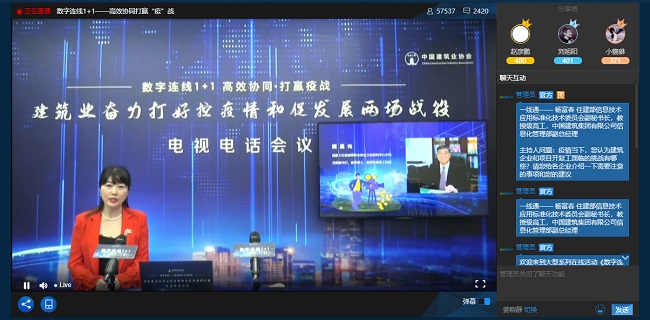 2月26日,由我會主辦、廣聯達科技股份有限公司承辦的建筑業奮力打好控疫情和促發展兩場戰役電視電話會議在北京召開,會議對全國疫情防控、建筑業企業復工應對措施等當前重要問題分享了先進經驗做法并提出了建議。王鐵宏會長參加會議并講話。會議直播期間共約96000人次點擊觀看。