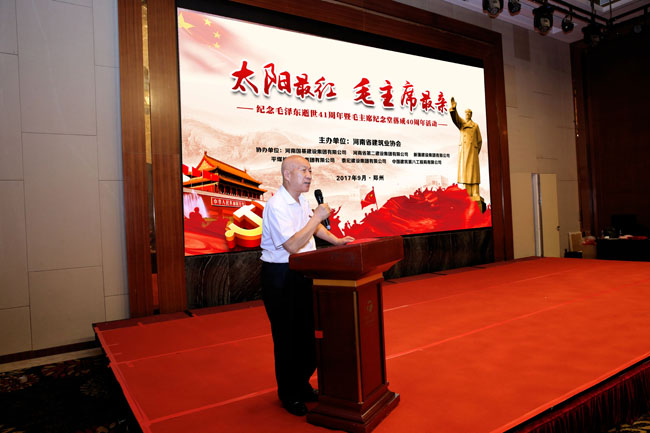 在9月9日偉大領(lǐng)袖毛主席逝世41周年之際,為寄托心中的哀思和表達(dá)對(duì)主席的敬仰,河南省建筑業(yè)協(xié)會(huì)舉辦了以“弘揚(yáng)革命志•感念偉人懷”為主題的紀(jì)念活動(dòng)。會(huì)議特別邀請(qǐng)到毛主席生前機(jī)要秘書張玉鳳夫婦、在河南期間的毛遠(yuǎn)新夫婦、中國(guó)建筑業(yè)協(xié)會(huì)吳濤副會(huì)長(zhǎng)兼秘書長(zhǎng)、中國(guó)工程院肖緒文院士、中國(guó)建筑工程總公司毛志兵總工程師,來(lái)自全國(guó)建筑業(yè)協(xié)會(huì)的負(fù)責(zé)人、建筑行業(yè)的嘉賓及我省建筑業(yè)企業(yè)家一起追憶、緬懷領(lǐng)袖!