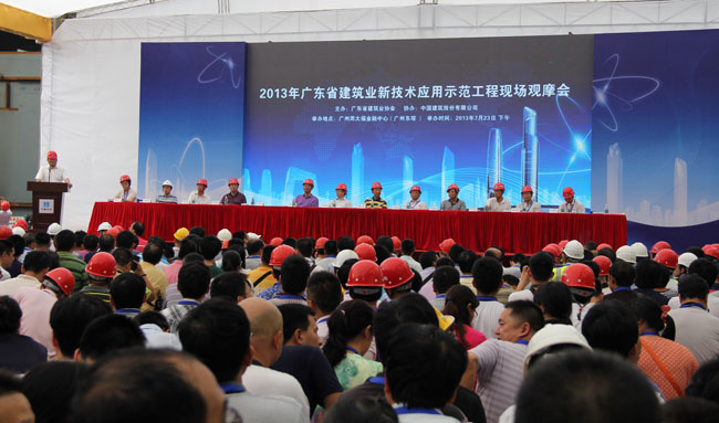 中國建筑股份有限公司東塔項目部在大會上介紹了廣州東塔工程中技術創新和科學管理的經驗。會后,1200多名參會代表觀摩了項目現場,并表示此次觀摩受益匪淺。