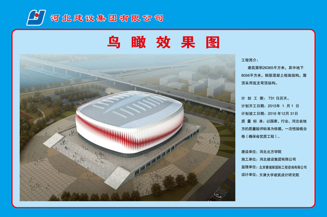 該工程總建筑面積2.63萬(wàn)平方米,鋼筋混凝土框架結(jié)構(gòu),屋頂采用弦支穹頂結(jié)構(gòu),工程中標(biāo)價(jià)7700萬(wàn)元,工期731天。該項(xiàng)目為2022年冬奧會(huì)的基礎(chǔ)項(xiàng)目工程,它將有力促進(jìn)我省體育事業(yè)的快速發(fā)展,為申辦2022年冬季奧運(yùn)會(huì)提供條件支撐。