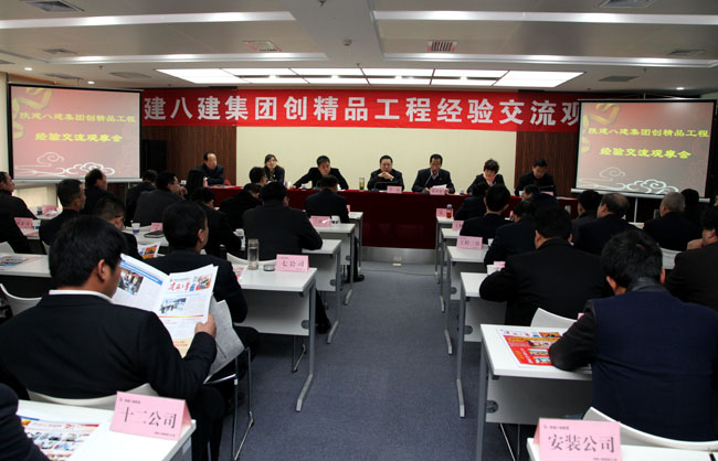 12月6日,陜建八建集團在承建的西咸新區第一個魯班獎工程航投大廈召開2015年創精品工程經驗交流觀摩會。集團總經理章輝講話,集團副總經理、總工程師張長虹主持會議。集團領導班子,各公司總經理、總工、主管生產副總經理、項目經理,集團相關職能部門負責人130余人參加會議。
