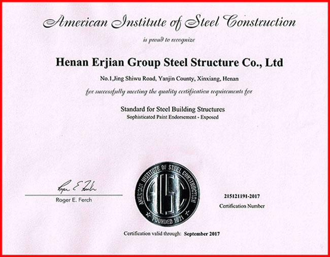 近日,河南二建集團鋼結構有限公司正式收到美國鋼結構協會(AISC)質量體系認證證書,成為河南省首家通過美國鋼結構協會審核認證的企業。
