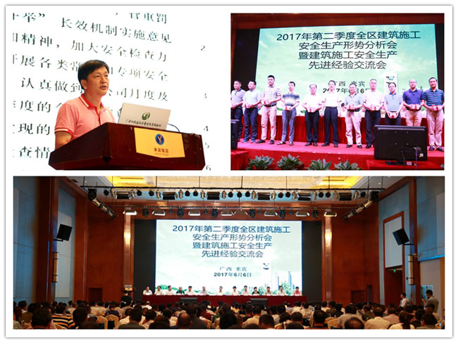 6月6日,廣西建筑施工質(zhì)量安全標(biāo)準(zhǔn)化觀摩現(xiàn)場(chǎng)觀摩會(huì)暨安全生產(chǎn)應(yīng)急救援演練觀摩會(huì)在廣西建工一建來(lái)賓祥康苑項(xiàng)目舉行。自治區(qū)住建廳黨組成員、副廳長(zhǎng)葉云,集團(tuán)公司副總經(jīng)理陳禮松及來(lái)賓市、自治區(qū)安監(jiān)局等相關(guān)部門(mén)領(lǐng)導(dǎo)出席觀摩,廣西建工一建董事長(zhǎng)、黨委書(shū)記蒙貴飛,總經(jīng)理、黨委副書(shū)記岑宏及公司領(lǐng)導(dǎo)邱國(guó)興、謝鴻衛(wèi)、牙高峰陪同觀摩。來(lái)自住建廳相關(guān)部門(mén)及全區(qū)各市縣住建部門(mén)、區(qū)內(nèi)外建筑施工企業(yè)、廣西建工一建各單位主要負(fù)責(zé)人共計(jì)400余人參加了觀摩活動(dòng)。