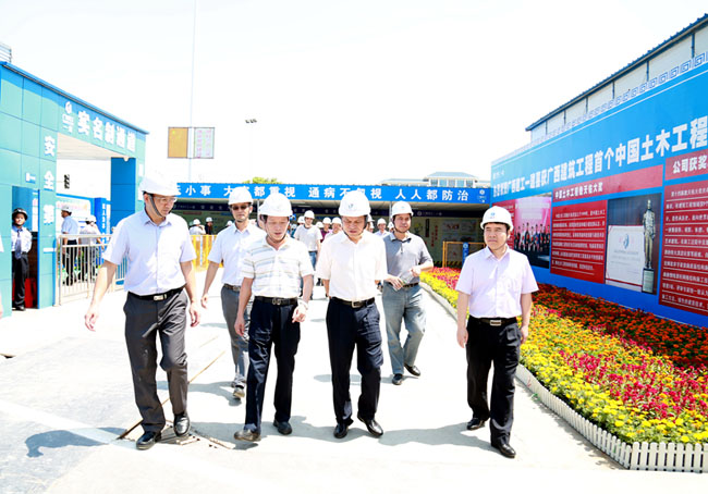 在工地現(xiàn)場(chǎng),當(dāng)觀摩人員走進(jìn)工地大門(mén)時(shí),“請(qǐng)正確佩戴安全帽,進(jìn)入工地請(qǐng)走安全通道”的安全提示語(yǔ)音自動(dòng)播放。葉云副廳長(zhǎng)一行第一批觀摩人員在講解員的引領(lǐng)下首先觀摩了項(xiàng)目的安全文明標(biāo)準(zhǔn)化施工及揚(yáng)塵防治,項(xiàng)目負(fù)責(zé)人向與會(huì)人員介紹工程項(xiàng)目施工行為規(guī)范化、安全管理科學(xué)化、安全防護(hù)標(biāo)準(zhǔn)化、場(chǎng)容場(chǎng)貌秩序化的經(jīng)驗(yàn),還現(xiàn)場(chǎng)展示了施工揚(yáng)塵防治標(biāo)準(zhǔn)化噴淋系統(tǒng)。通過(guò)現(xiàn)場(chǎng)觀摩,使與會(huì)人員了解工地質(zhì)量安全及揚(yáng)塵防治標(biāo)準(zhǔn),大力營(yíng)造建筑施工建設(shè)標(biāo)準(zhǔn)化質(zhì)量安全標(biāo)準(zhǔn)和揚(yáng)塵防治氛圍,促進(jìn)工地現(xiàn)場(chǎng)揚(yáng)塵防治工作不斷提升。