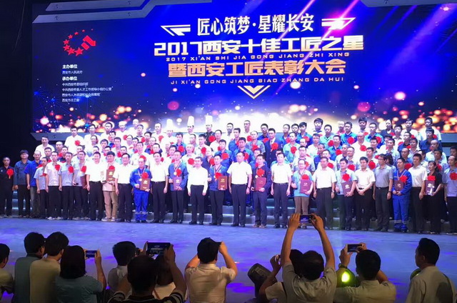 6月14日,西安市人民政府主辦的2017西安十佳工匠之星暨西安工匠表彰大會在西航科技教育文化中心召開,西安市市長上官吉慶致辭,“西安十佳工匠之星”和“西安工匠”共100位各行各業(yè)的技術(shù)能手榮獲表彰。