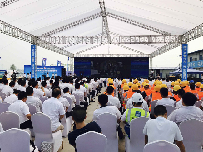 為響應國家號召,貫徹落實局和公司半年工作會精神,持續推進質量精細化管理,弘揚工匠精神,全面提升公司工程質量水平、項目管理水平和市場競爭力。8月28日,中建三局二公司在基礎設施公司承建的襄陽白石街地下綜合管廊PPP項目召開以“大力提升質量 建設質量強國”為主題的2017年“質量月”啟動會暨質量觀摩會。