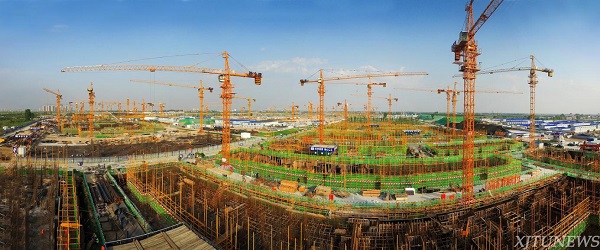 陜建集團作為一期項目的施工總承包單位,將這個項目列為陜建的“五個一工程”(“一號工程”、“一把手工程”、“一流的項目經理”、“一流的工程質量”、“一流的管理團隊”)。面對項目建設面積大、施工范圍廣、工期時間緊的特殊情況,各參建單位以“見紅旗就扛,有第一就爭”的奮斗精神,改寫了一個又一個數字,打破了一項又一項紀錄。歷經一年多的夜以繼日、攻堅克難,2萬名工人和600多名管理人員用汗水和心血澆筑了工程,用奉獻與責任履行了承諾,交出一份份滿意的答卷。