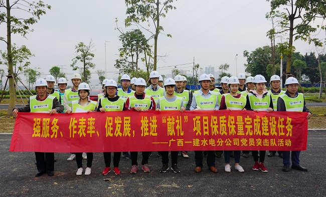 項(xiàng)目內(nèi)容繁多,施工面廣、系統(tǒng)復(fù)雜、施工變更頻繁、施工耗時長,在該類項(xiàng)目施工中實(shí)屬少見,是塊難啃的“硬骨頭”。為此,直屬分從柳州、賀州、貴港、南寧等地項(xiàng)目抽調(diào)骨干能手、專業(yè)工人80多人,組成強(qiáng)大的搶工團(tuán)隊(duì),并第一時間成立了黨員突擊隊(duì),黨工團(tuán)通力協(xié)作搶工期,充分發(fā)揚(yáng)黨員的先鋒模范和戰(zhàn)斗堡壘作用。