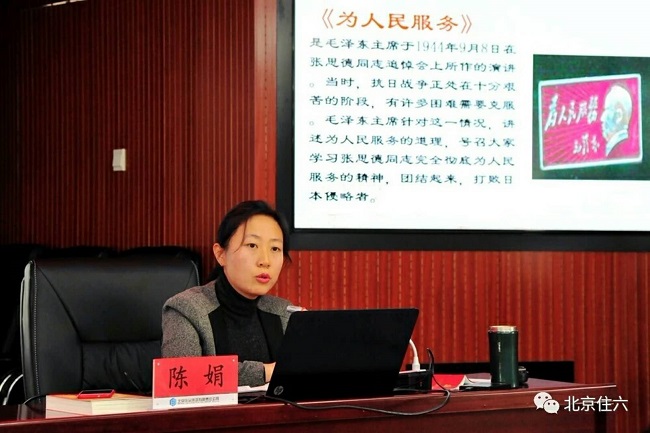 住六公司黨委副書記陳娟給青年職工講黨課