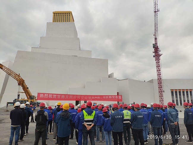 6月30日,隨著甘南文旅會展中心金頂真容乍現,項目部全體人員歡欣鼓舞——經過100天奮戰,甘肅建投一諾千金,主場館項目A區、E區在 6月30日如期完工,交付布展,將不可能變為了現實。