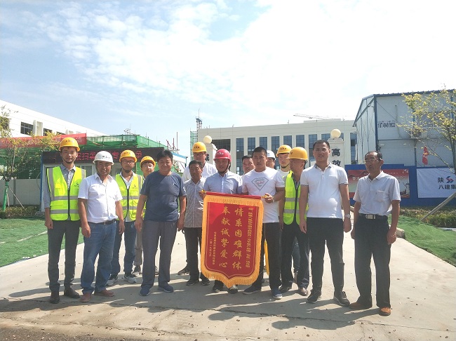 7月12日上午10時(shí),旬邑縣人大、城管街道辦肖咀村黨支部第一書記張亞峰一行來(lái)到陜建八建集團(tuán)工程二部中國(guó)中藥陜西一方平康產(chǎn)業(yè)園(旬邑)項(xiàng)目,送上“情系困難群體,奉獻(xiàn)誠(chéng)摯愛(ài)心”的錦旗,對(duì)項(xiàng)目部在肖咀村精準(zhǔn)扶貧工作中發(fā)揮的重要作用表示衷心的感謝。項(xiàng)目部全體管理人員熱情接待,并進(jìn)行了座談交流。