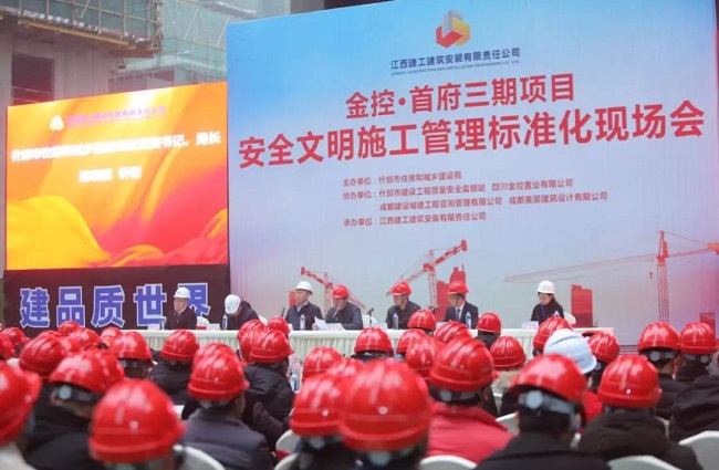 近日,四川省什邡市建設系統今冬明春安全文明布置會暨安全文明施工標準化現場會在江西建工建筑安裝有限責任公司什邡市金控首府三期項目部召開。來自什邡市住建系統有關部門、項目施工、建設、監理企業經理及什邡市在建項目負責人等260余人參加現場會。成都建設城建工程咨詢管理有限公司副總經理李俊燁,什邡市住房和城鄉建設局黨委委員趙康平及局黨委書記、局長陳曉斌等先后致辭。
