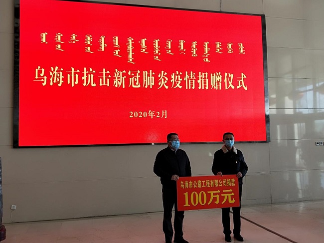 面對疫情,烏海市公路工程有限公司在全市建筑業企業中率先行動,發揚“戰役先鋒”精神,用實際行動書寫責任擔當,分別向烏海市紅十字會捐款100萬元,向烏達區紅十字會捐款50萬元,用于烏海市和烏達區新型冠狀病毒肺炎疫情防控工作。在2月9日上午的捐贈儀式上,公路工程公司和其他愛心捐款企業一道參加捐贈活動,市委書記史萬鈞在捐贈儀式講話中充分肯定了這些愛心企業無私捐助的大愛情懷,并代表市委、市政府及全市人民向捐助企業表示衷心的感謝!