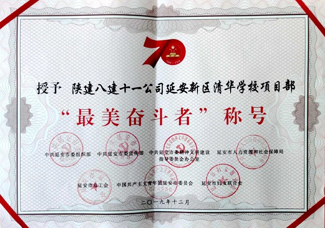 近日,陜建八建集團承建的清華附中延安學校項目部榮獲延安“最美奮斗者”稱號。