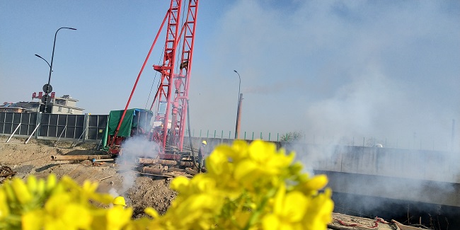 3月19日,隨著鳴響的禮炮柯橋互通改擴(kuò)建工程鉆孔灌注樁首樁成功開鉆。開鉆的首樁是橋頭直大橋0號(hào)右樁基,施工區(qū)域距既有錢濱線公路僅2米,最近處僅達(dá)1.3米,橋頭直大橋是在既有的大橋兩側(cè)進(jìn)行拼寬,本橋一共有八跨,其中有三跨在水中,土質(zhì)上部為海積淤泥、中部為粉質(zhì)黏土,且淤泥較深。此外右幅樁位下有六根弱電管線,左幅有一根直徑1.2m自來水管,一根直徑1.6m排水管,地下管線復(fù)雜,施工安全風(fēng)險(xiǎn)較大,本次首樁成功開鉆,為接下來313根鉆孔灌注樁的施工積累了施工經(jīng)驗(yàn),奠定了堅(jiān)實(shí)基礎(chǔ)。