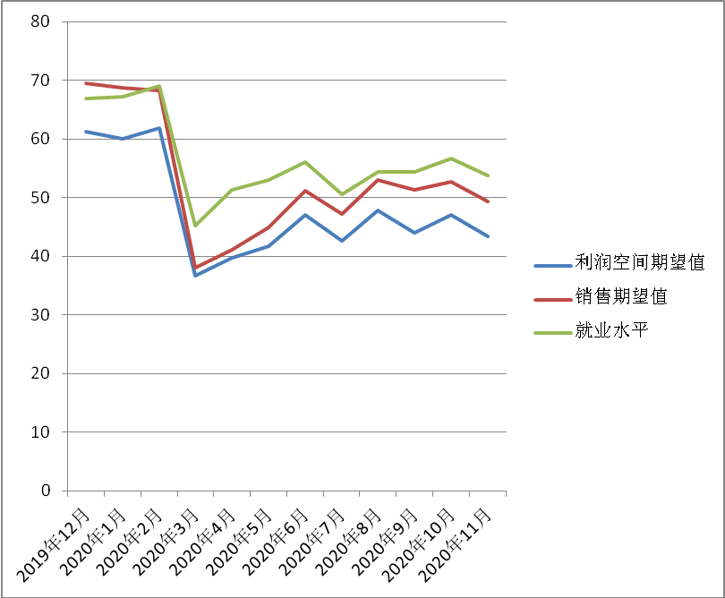 美國建造師和承包商聯(lián)合會每月就建筑銷售預期、利潤空間預期和人員到位預期發(fā)布信心指數(shù)報告。分值50以上表明增長。